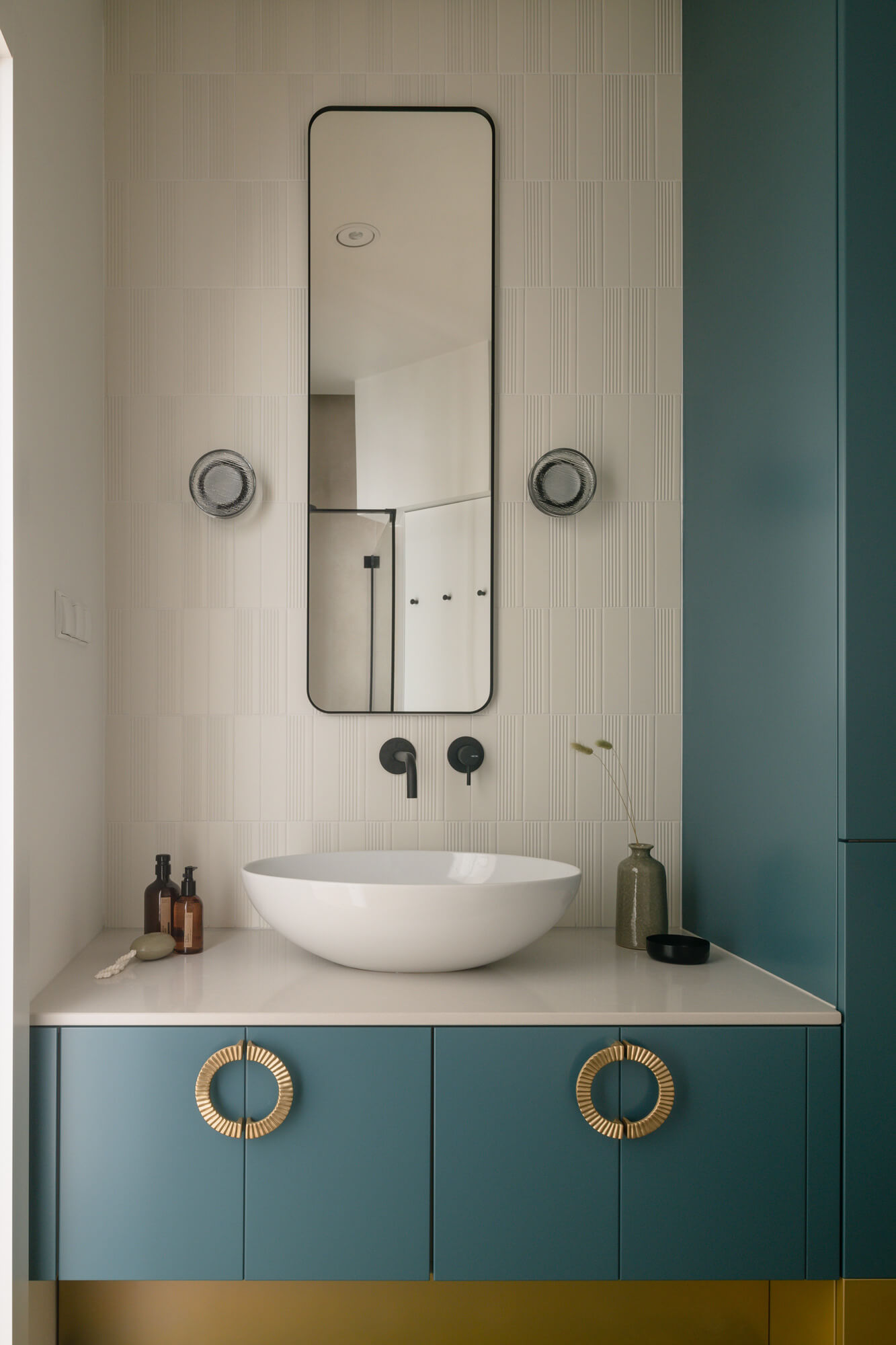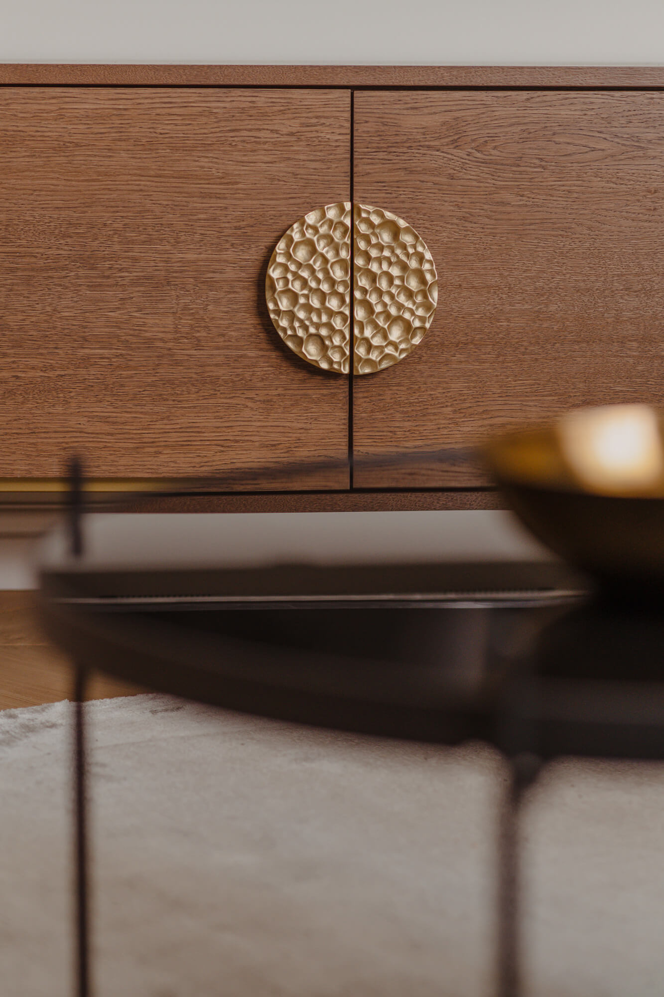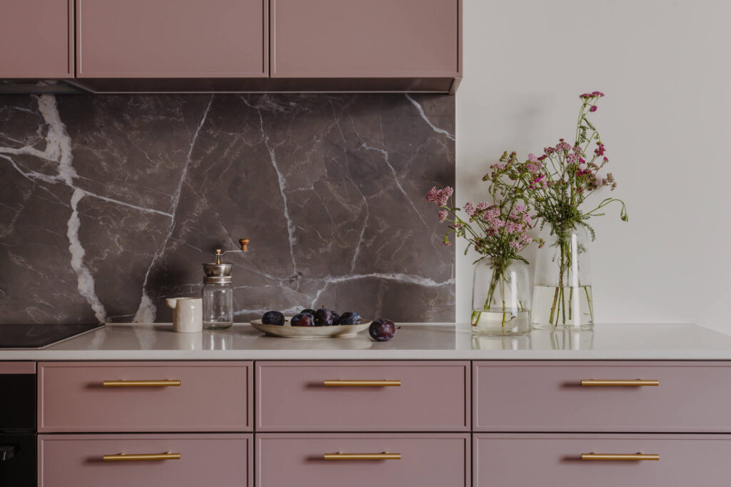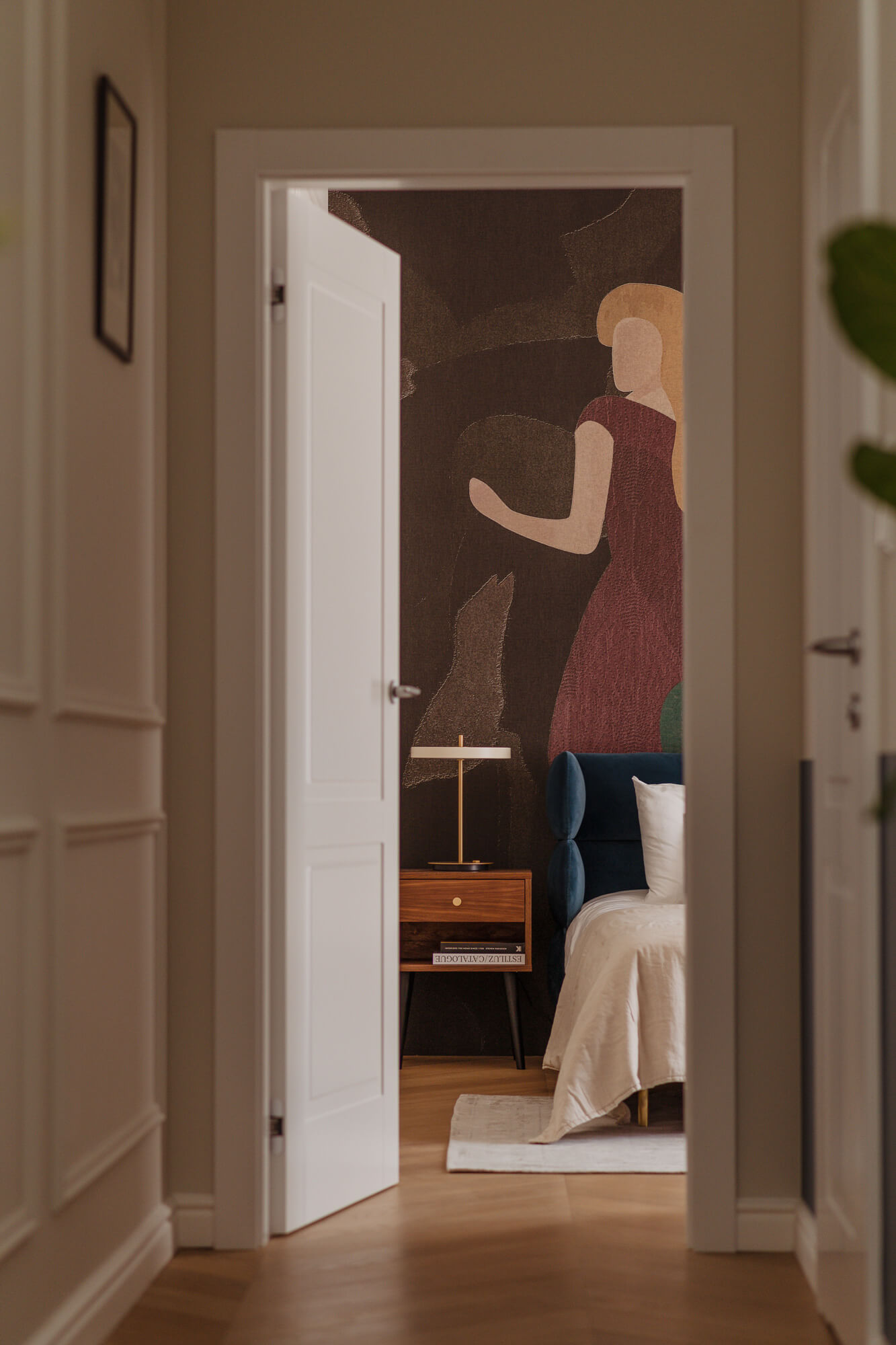 Prawdziwy azyl i miejsce odpoczynku stworzone w starej kamienicy – to projekt Skawińska. Królują tu kolory lila, niebieski i zielony, zdefiniowane przez tapetę Pierre’a Frey’a, z motywem papug i roślin, widoczną na jednej ze ścian salonu. Meble do mieszkania zostały zaprojektowane przez naszą pracownię. Zarówno do ich wykonania, jak i do wykończenia całego lokum, wykorzystano materiały czerpane z natury – drewno, mosiądz czy kwarc. Nie zabrakło również złotych akcentów, które nadają elegancji i szyku.